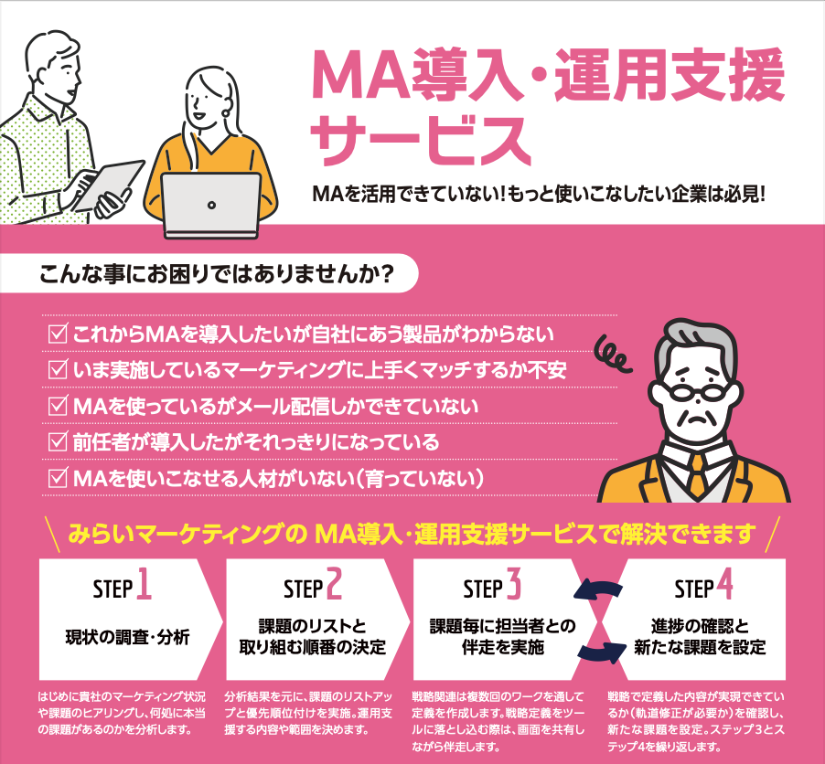 情報 みらいマーケティング株式会社 Pardotの導入から伴走/運用サポートまでトータルでご支援いたします。