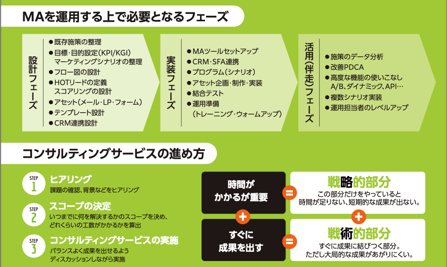 Account Engagementの導入や活用のコンサルティングサービスを提供しています。また、運用代行や貴社内での定着をサポートする伴走サービス、貴社マーケティング状況の深度を測るアセスメントサービス、研修サービスを提供しています。####デジタルマーケティングに取り組みたい、導入したが活用しきれていない、もっと成果を出す方法はないのか?といった課題をお持ちのお客様、ぜひ当社までお気軽にご相談ください。####みらいマーケティングではお客様と共に輝かしい“みらい”を創造することをお約束します。